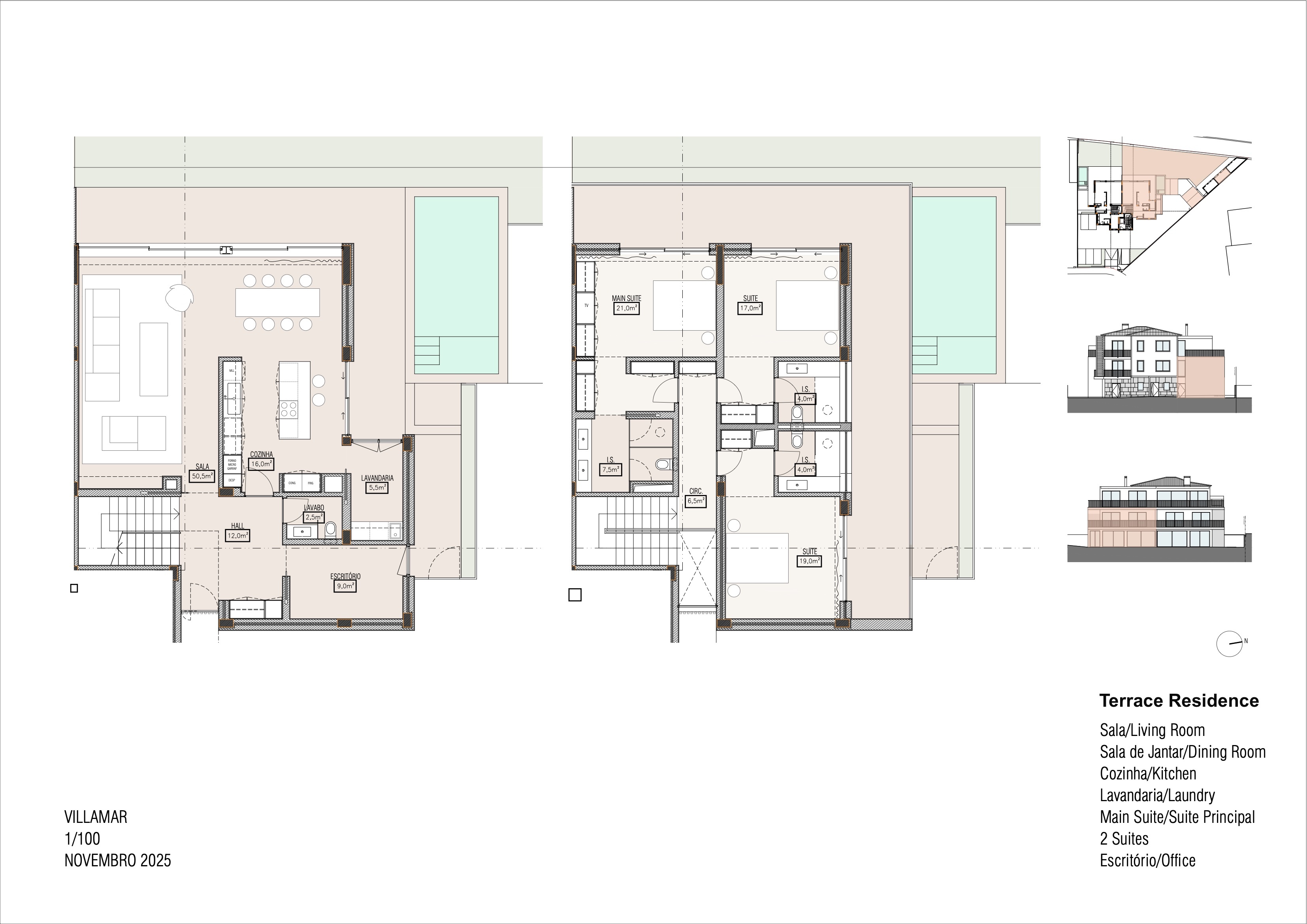 Três residências T4 independentes, com áreas generosas e layouts pensados para uma vivência contemporânea